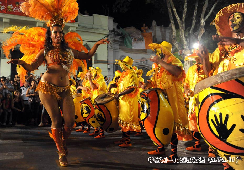 2月6日,乌拉圭首都蒙得维的亚举办盛大狂欢节“召唤”巡游表演,作为2010年乌拉圭狂欢节的重头戏,“召唤”巡游表演吸引了几千名观众。图片来源:中国新闻网>>点击观看详细内容