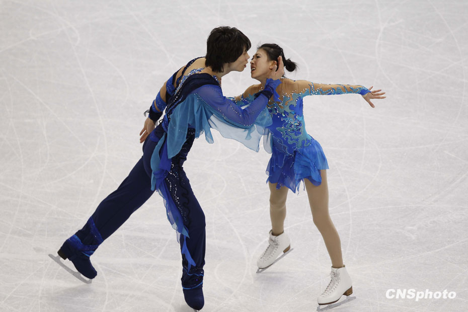 当地时间2月13日,中国花样滑冰队庞清/佟健、张丹/张昊在温哥华太平洋体育馆,利用最后的休息时间重复练习积极备战即将到来的比赛。中新社记者 盛佳鹏 摄
