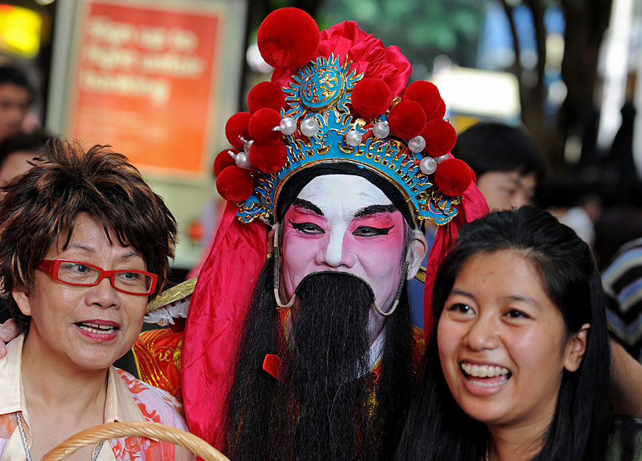 图为澳大利亚悉尼唐人街上华人社团与民众合影。