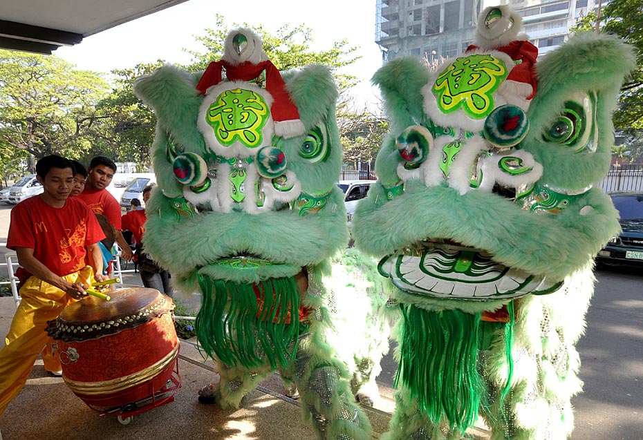 图为菲律宾马尼拉华人社区舞狮迎新年。