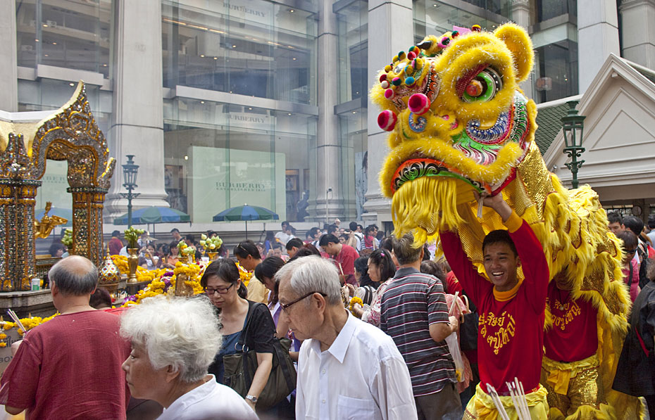 图为泰国曼谷市民舞狮庆新春。