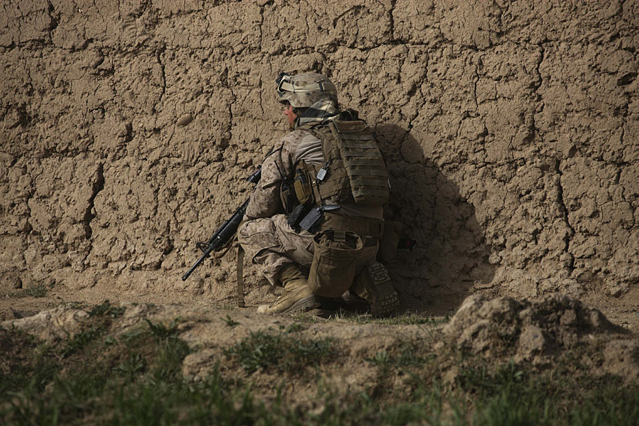 以美国为主的北约与阿富汗盟军对阿南部城市马尔贾的清剿活动14日进入了第二天。随着巷战展开,交火愈加频繁和激烈。图片来源:中国新闻网