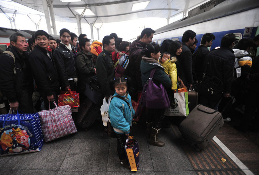 春节七天长假接近过半,部分返乡者提前返程,武汉铁路部门迎来春节后的首个客流高峰。图为武昌火车站。周超 摄