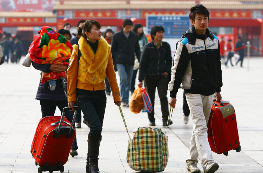 春节假期即将结束,全国各大车站迎来春运节后返程高峰。