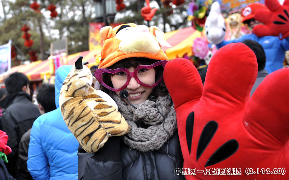 2月14日,农历正月初一,北京各大传统庙会、洋庙会争相开幕,许多游客头戴虎年饰品开心游庙会。图片来源:中国新闻网>>点击观看详细内容