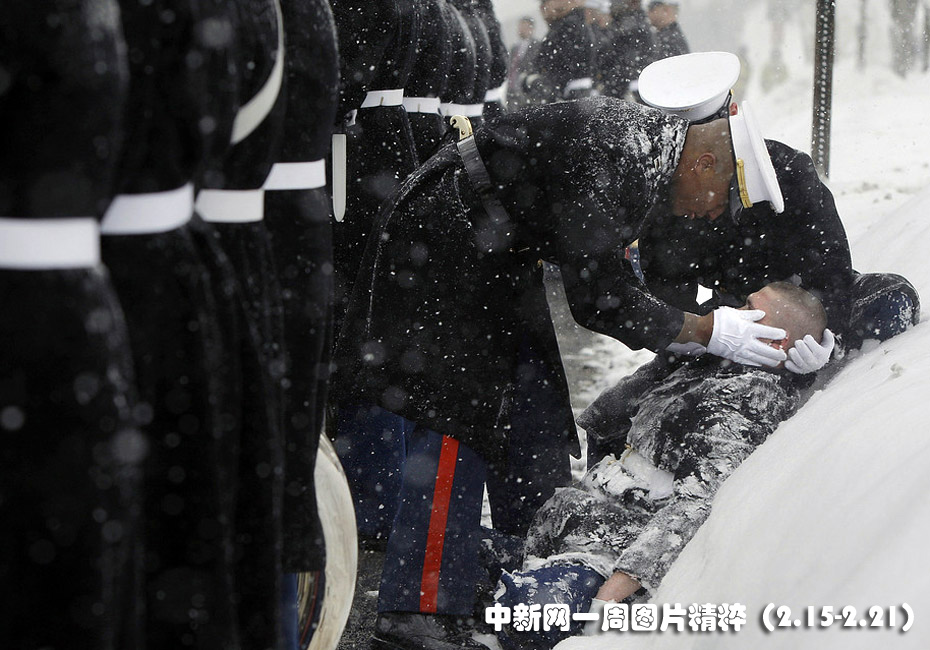 2月16日(周二),美国一个仪仗队士兵在葬礼上晕倒。