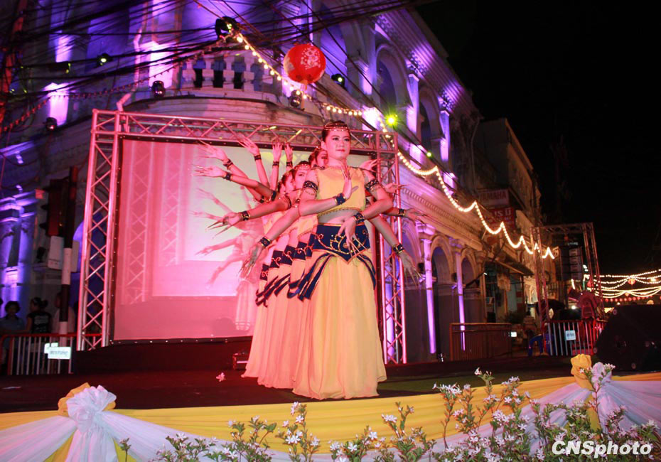 泰国普吉岛20日举办为期三天的大型活动庆祝中国春节。普吉中学孔子课堂应邀参加了本次庆祝活动,包括举办中华饮食、中国文化工艺品、以及汉语教材为内容的展览。图为庆祝活动中当地学生表演的千手观音舞蹈。 中新社发 顾时宏 摄