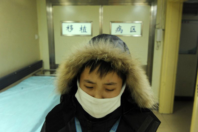图为准备回家的邵帅经过母亲所在病房时显得特别的疲惫。朱嘉磊/CFP
