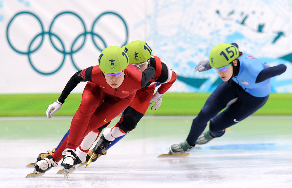 当地时间2月24日,温哥华冬奥会女子短道速滑3000米接力A组决赛中,中国队王濛、周洋、孙琳琳、张会四朵金花联袂出击,最终将金牌归入中国队囊中。图片来源:中国新闻网