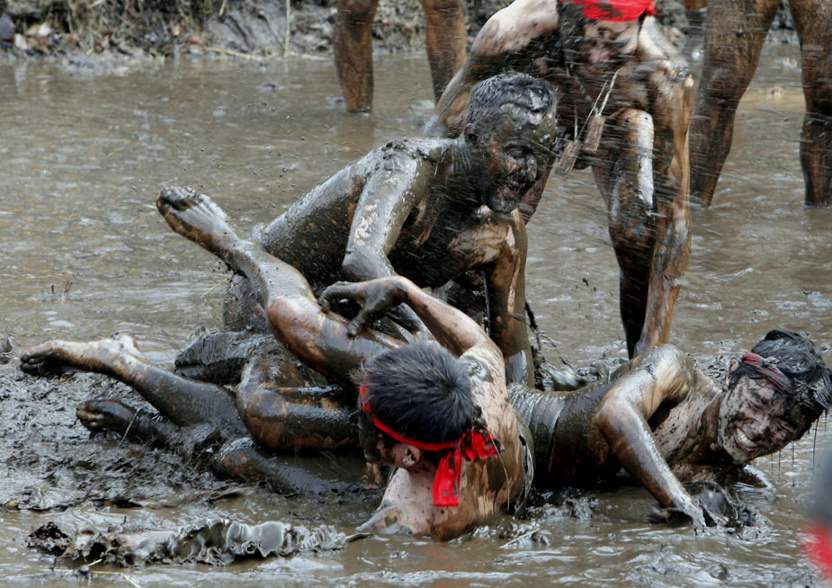2月25日,在日本千叶县四街道市郊外的稻田里,居民们参加一年一度的“泥浆节”。当地的男子们赤身跳进稻田,把泥浆涂抹在身上。人们希望通过这种仪式祈求新的一年能有个好收成。