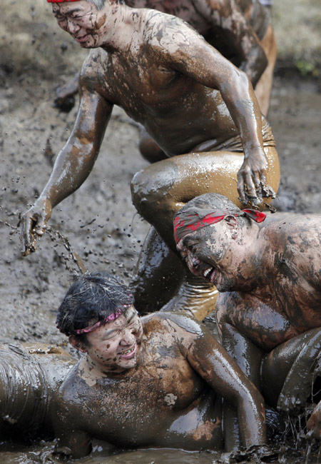 2月25日,在日本千叶县四街道市郊外的稻田里,居民们参加一年一度的“泥浆节”。当地的男子们赤身跳进稻田,把泥浆涂抹在身上。人们希望通过这种仪式祈求新的一年能有个好收成。