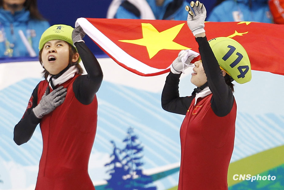 北京时间27日中午,中国选手王濛在2010年温哥华冬奥会短道速滑女子1000米的决赛中摘得金牌,至此,中国短道速滑女队包揽了本届冬奥会女子全部四个项目的金牌创造了历史。中新社发 盛佳鹏摄
