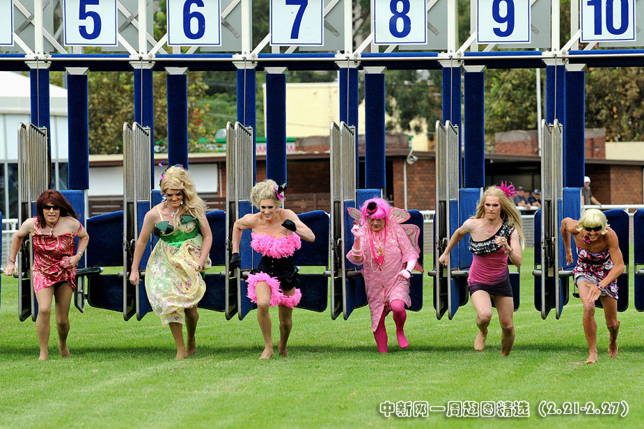 当地时间2月26日,澳大利亚悉尼,众多同性恋们浓妆艳抹在皇家赛马场举行赛跑,迎接即将到来的悉尼同性恋大游行。图片来源:中国新闻网>>点击观看详细内容