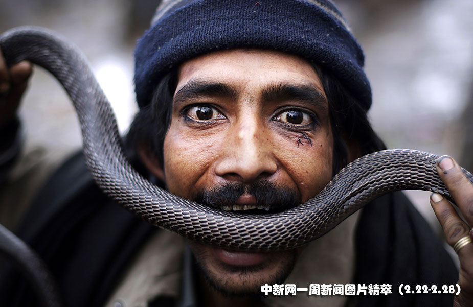 22日(周一),在巴基斯坦伊斯兰堡附近一条街道上的耍蛇艺人。