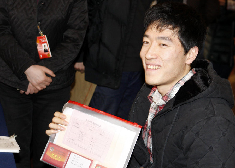3月2日,参加全国政协的委员刘翔赶赴北京国际饭店报到。新宇 摄