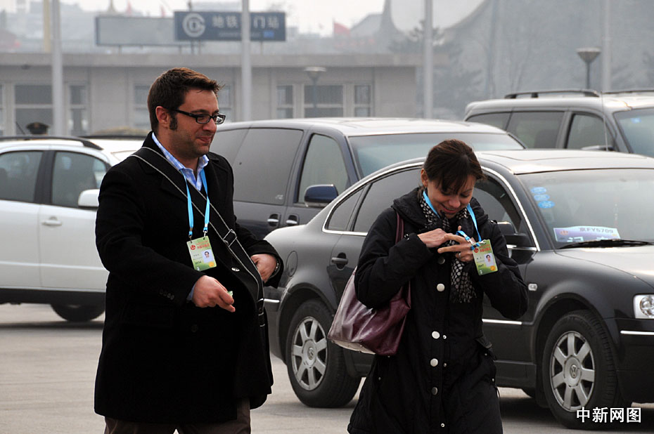 3月3日下午,全国政协十一届三次会议在北京开幕。外国记者抵达人民大会堂对中国“两会”进行报道。中新网记者 吴歆 摄