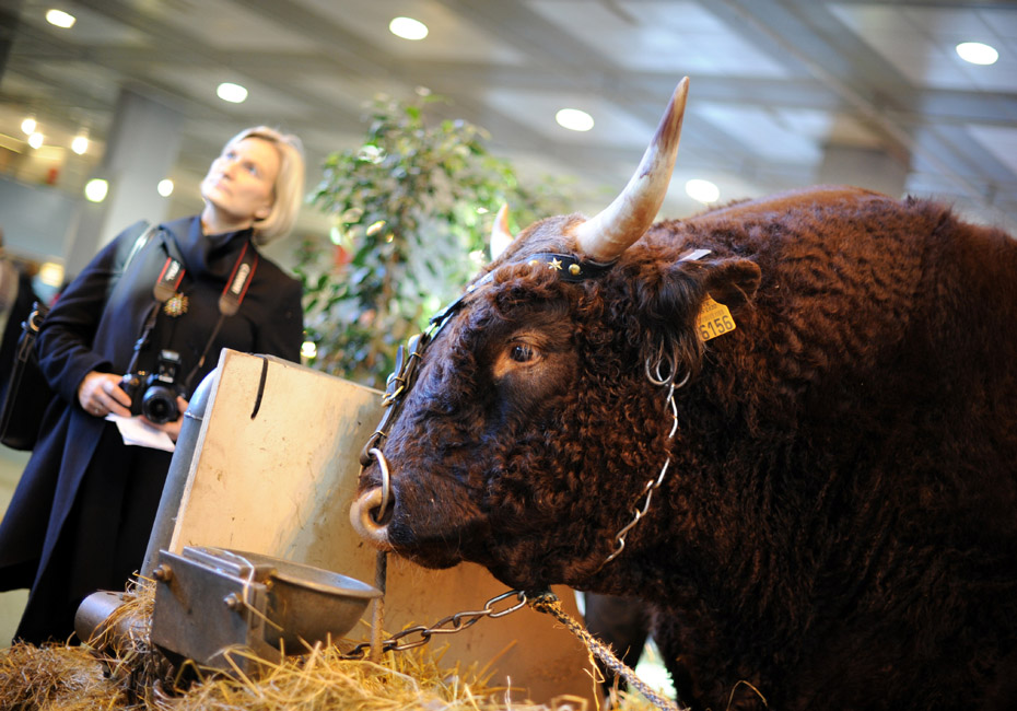 近日,为期9天的第47届法国国际农业博览会在巴黎凡尔赛门展览中心开幕。展会上的“飞禽走兽”各类家畜不仅受到商人们的欢迎,也异常惹孩子们喜爱。图片来源:中国新闻网