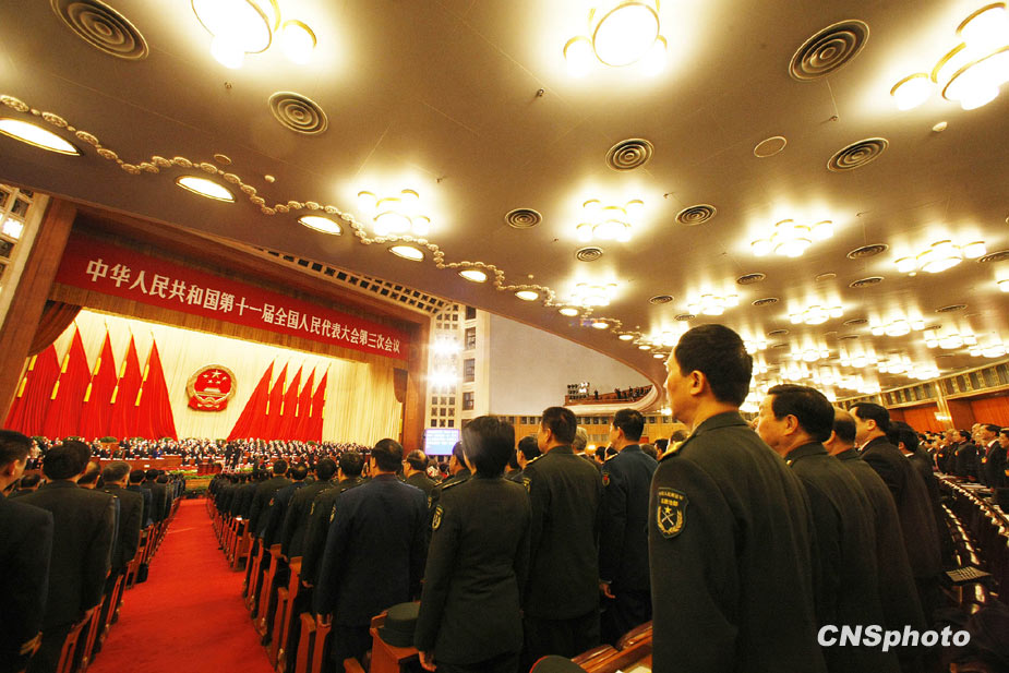 3月5日上午9时,十一届全国人大三次会议在北京隆重开幕。国务院总理温家宝作政府工作报告。中新社发 任晨鸣 摄