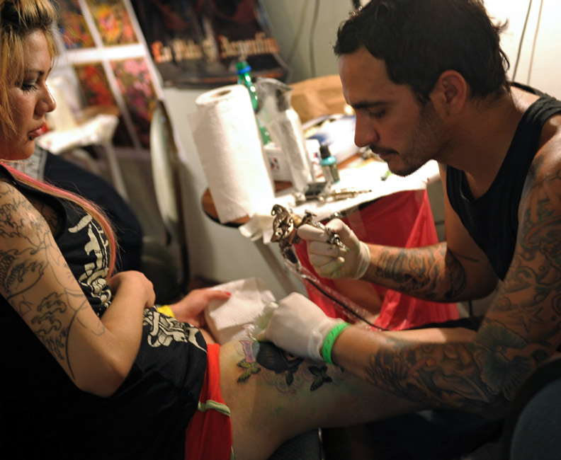 当地时间3月7日,第六届国际纹身展在阿根廷首都布宜诺斯艾利斯举行。来自美国、法国、西班牙、墨西哥、智利、巴西等国家的纹身高手前来献艺。图片来源:中国新闻网