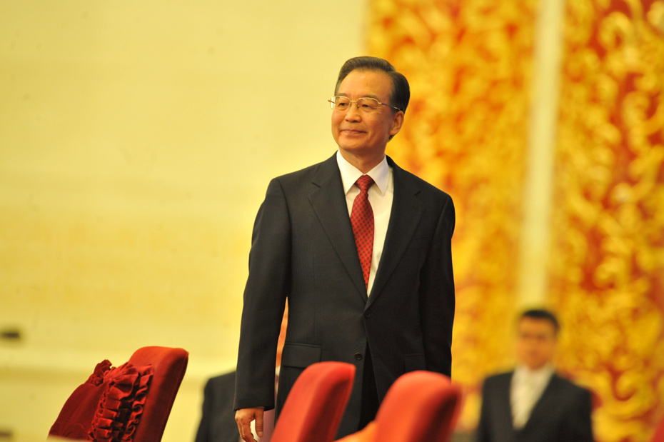 3月14日上午,国务院总理温家宝在人民大会堂三楼金色大厅与采访十一届全国人大三次会议的中外记者见面并回答记者提出的问题。温家宝总理阔步走进金色大厅。中新社记者 贾国荣 摄 图片来源:中国新闻网