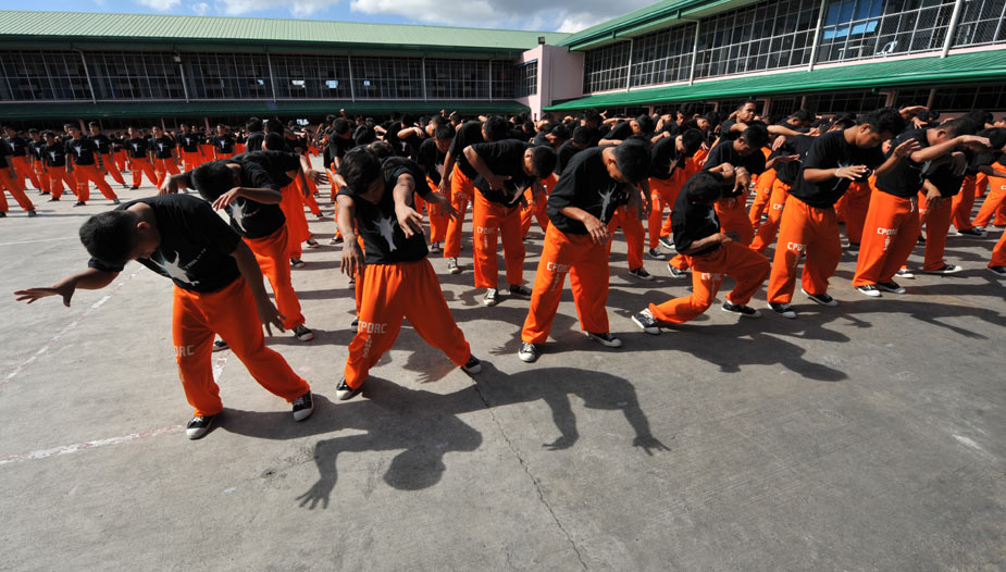 近日,在菲律宾超过1500名囚犯在监狱中集体学习已故歌坛巨星杰克逊的舞蹈,以此来激起他们生活的斗志。图片来源:中国新闻网