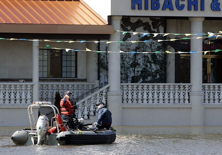 近日,美国东海岸地区再遭暴雨袭击,新泽西州帕塞伊克河洪水泛滥受灾地区民众纷纷撤离家园。图片来源:中国新闻网