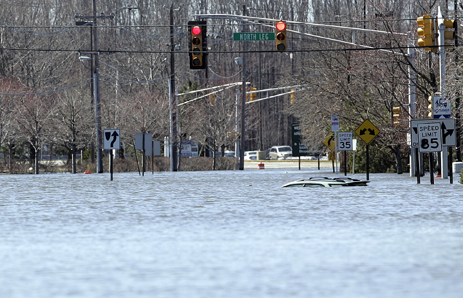 近日,美国东海岸地区再遭暴雨袭击,新泽西州帕塞伊克河洪水泛滥受灾地区民众纷纷撤离家园。图片来源:中国新闻网