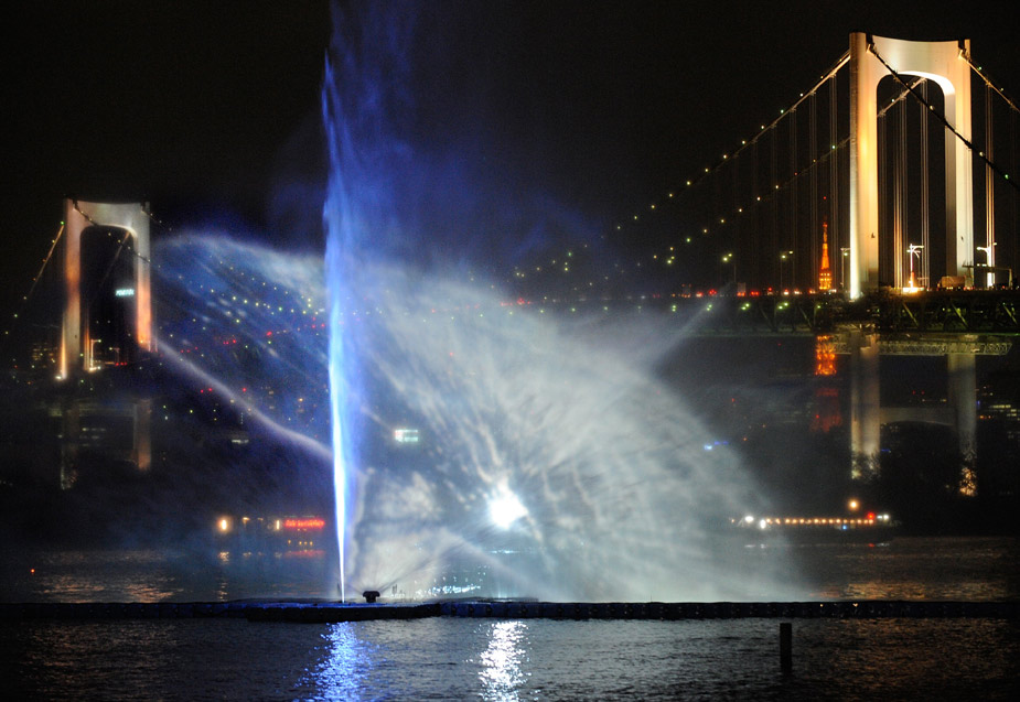 3月19日晚,在日本东京湾上演了一场美轮美奂的“海上幻灯”。东京湾的喷泉喷射出长60米、高23米的各种海洋生物的画面,令人惊叹。