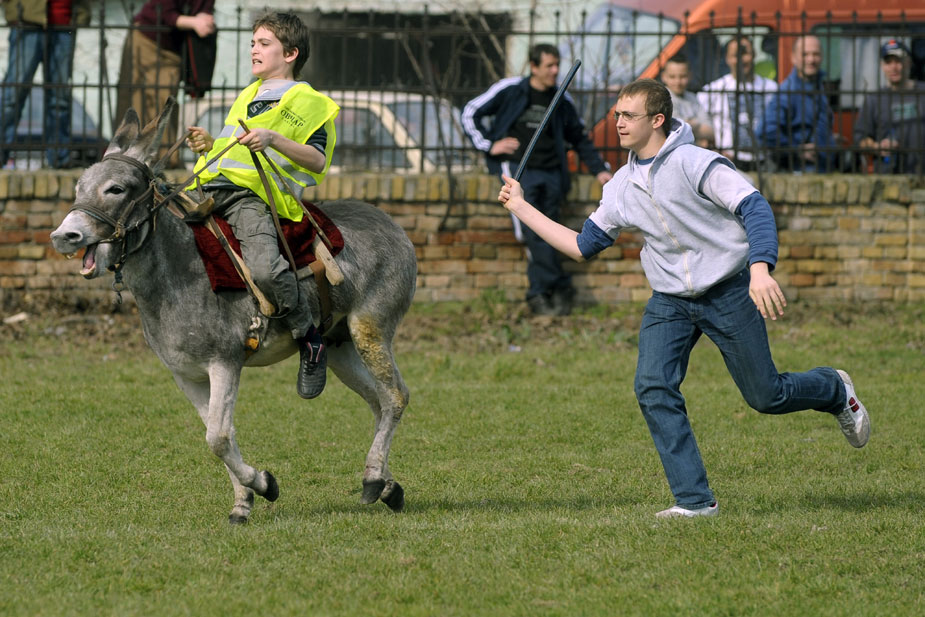 3月20日,在塞尔维亚首都贝尔格莱德西北30公里的一个村庄举行了传统的赛驴大赛。图片来源:中国新闻网