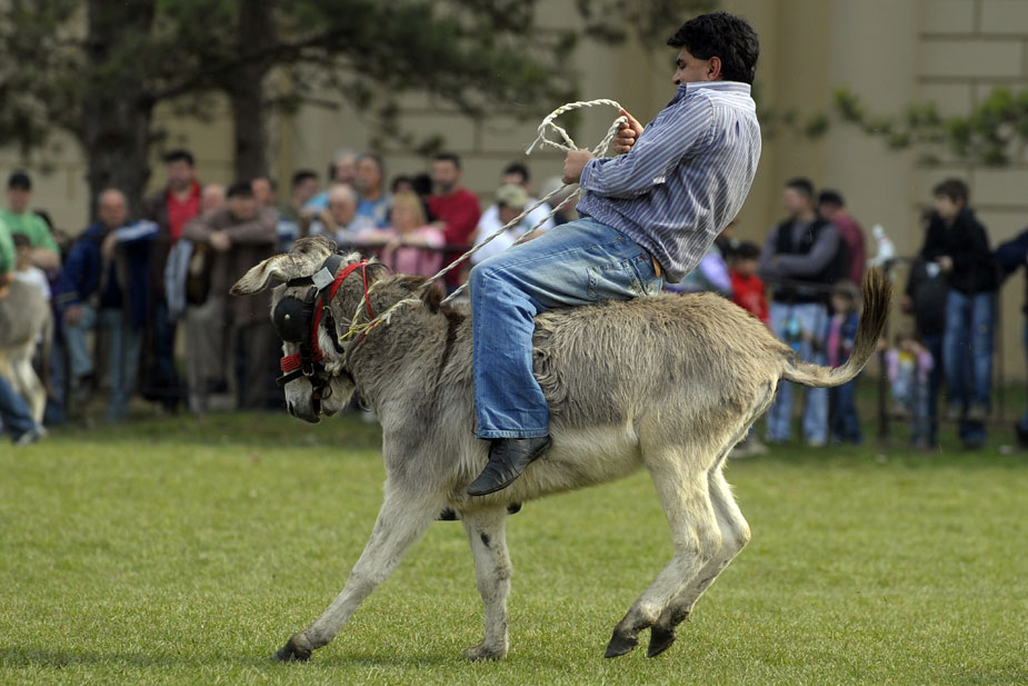 3月20日,在塞尔维亚首都贝尔格莱德西北30公里的一个村庄举行了传统的赛驴大赛。图片来源:中国新闻网