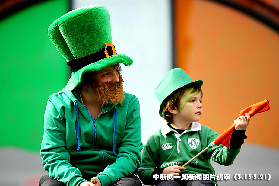 17日(周三),在都柏林,孩子们观看圣帕特里克节大游行。爱尔兰全国将有数十万人通过180多个活动来庆祝这一节日。