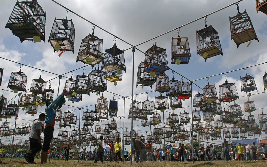 3月24日,一场“鸟儿唱歌”大赛在泰国南部的那拉提瓦府举行。图片来源:中国新闻网