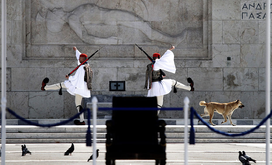 3月25日,在希腊首都雅典的宪法广场,人们参加独立战争纪念日庆祝活动。图片来源:中国新闻网