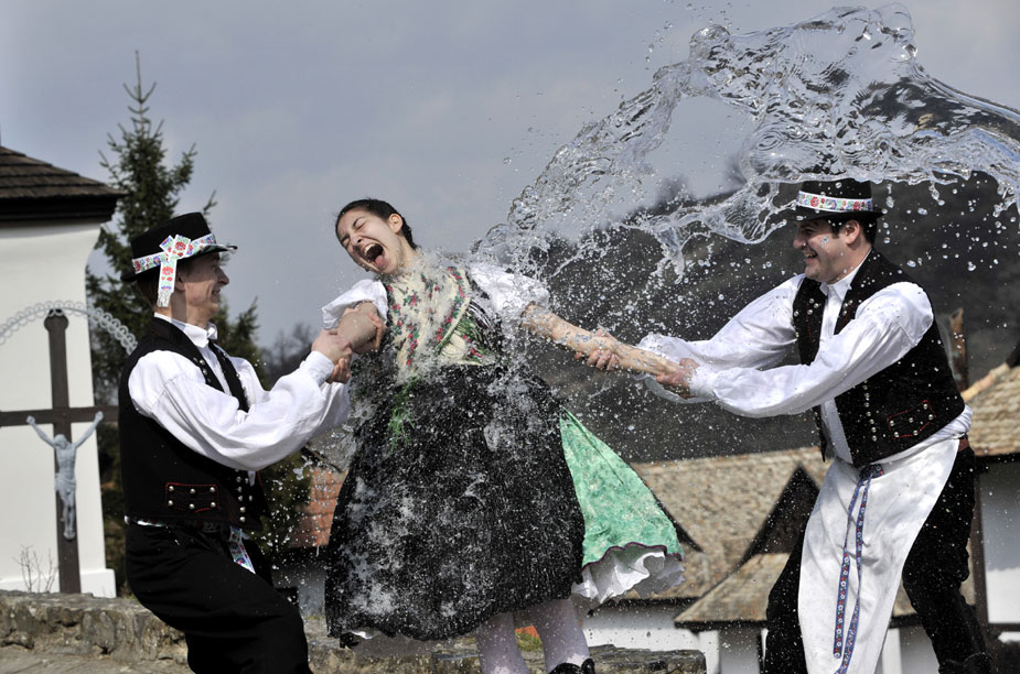 3月26日,在匈牙利首都布达佩斯以东被誉为世界文化遗产的霍洛克村,当地居民以向姑娘身上泼水的传统仪式庆祝复活节。此项古老习俗起源于公元2世纪。