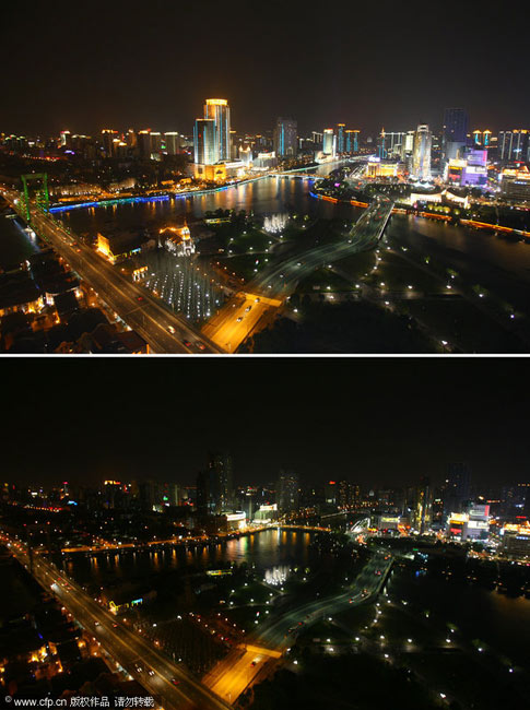 当日,世界自然基金会倡导的“地球一小时”活动得到全世界100多个国家和地区响应。中国的北京、上海、长沙、香港等许多城市也加入到这一活动中。图片来源:中国新闻网