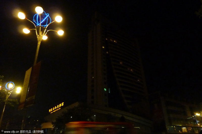 3月27日20时30分,四川省遂宁市明星康年大酒店准时熄灯,与全球同步“地球一小时”,以实际行动推动这项目前世界上规模最大的环保行动。钟敏/CFP
