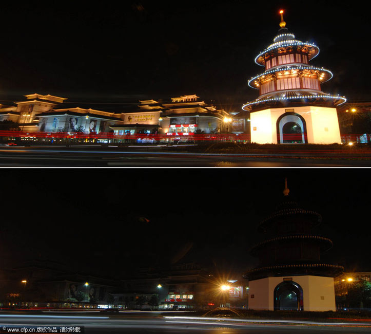 当日,世界自然基金会倡导的“地球一小时”活动得到全世界100多个国家和地区响应。中国的北京、上海、长沙、香港等许多城市也加入到这一活动中。图片来源:中国新闻网