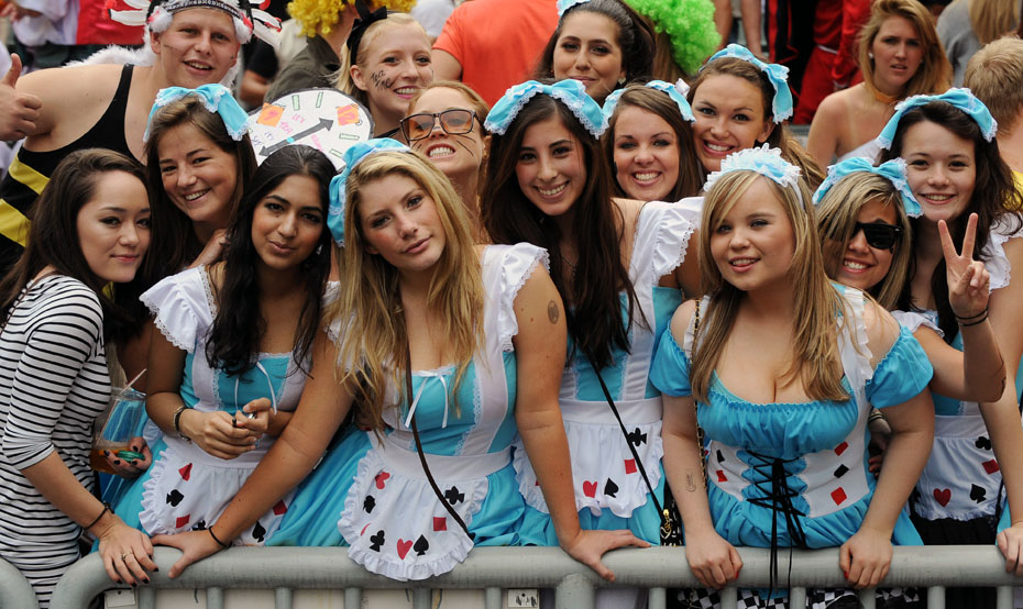 来自世界各地的球迷盛装捧场,狂乐连场赛事。图片来源:中国新闻网