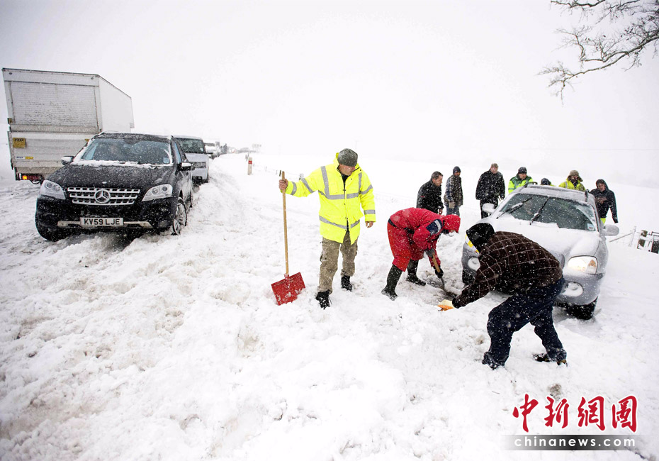 当地时间3月31日,英国北部部分地区遭暴风雪袭击,导致数万户家庭断电,有12名学生在恶劣天气引发的交通事故中受伤。图片来源:中国新闻网