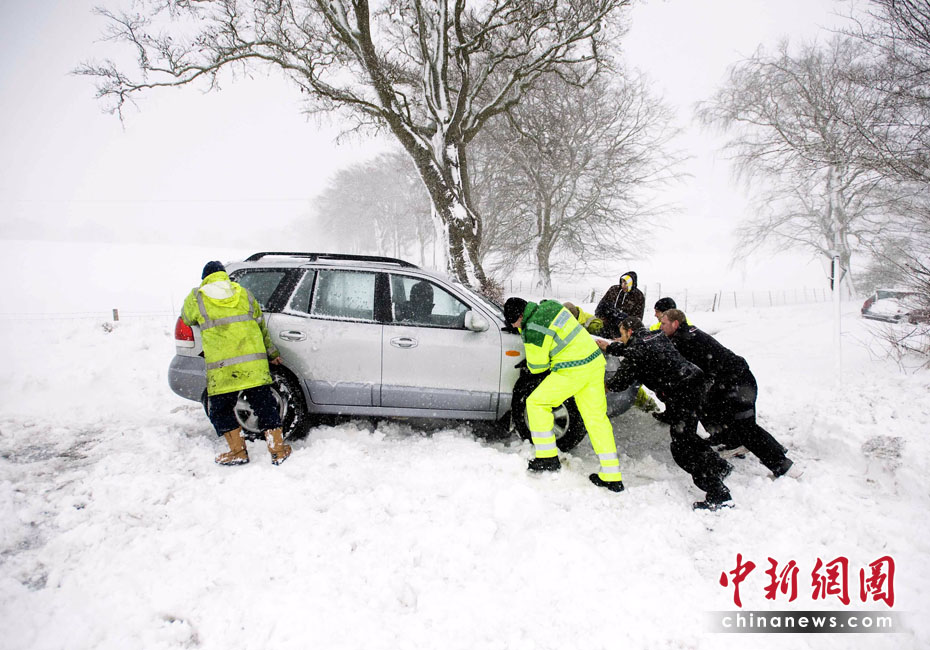 当地时间3月31日,英国北部部分地区遭暴风雪袭击,导致数万户家庭断电,有12名学生在恶劣天气引发的交通事故中受伤。图片来源:中国新闻网