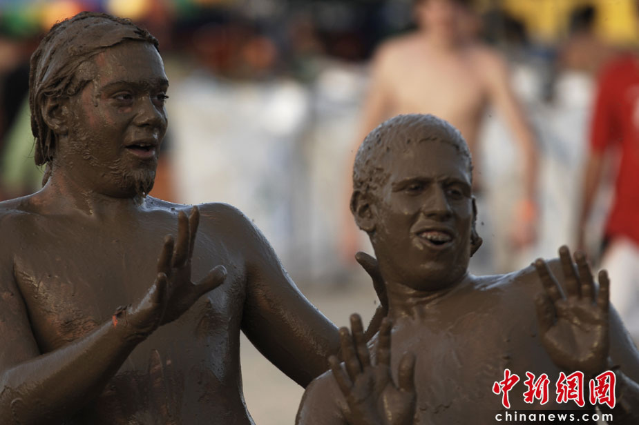 以色列美女泥浆中尽情撒欢庆节日