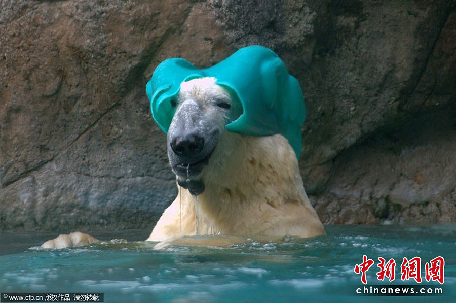 美国Asheboro北卡罗来纳动物园一头名叫威利的北极熊可是个“活宝”。任何一个可用的东西都能成为它在镜头前“耍宝”的玩具。图片来源:CFP