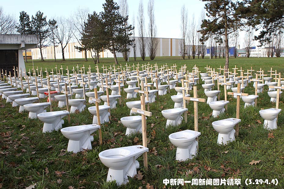 周五(2日),科勒公司法国区生产厂大规模裁员,员工用艺术形式进行抗议。