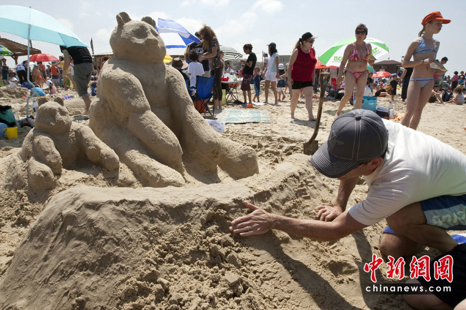 4月5日,以色列国家公园和自然保护区管理局在北城镇Beit Yanai举行了一年一度的沙雕大赛。世界众多国家的沙雕爱好者前来参赛。图片来源:中国新闻网