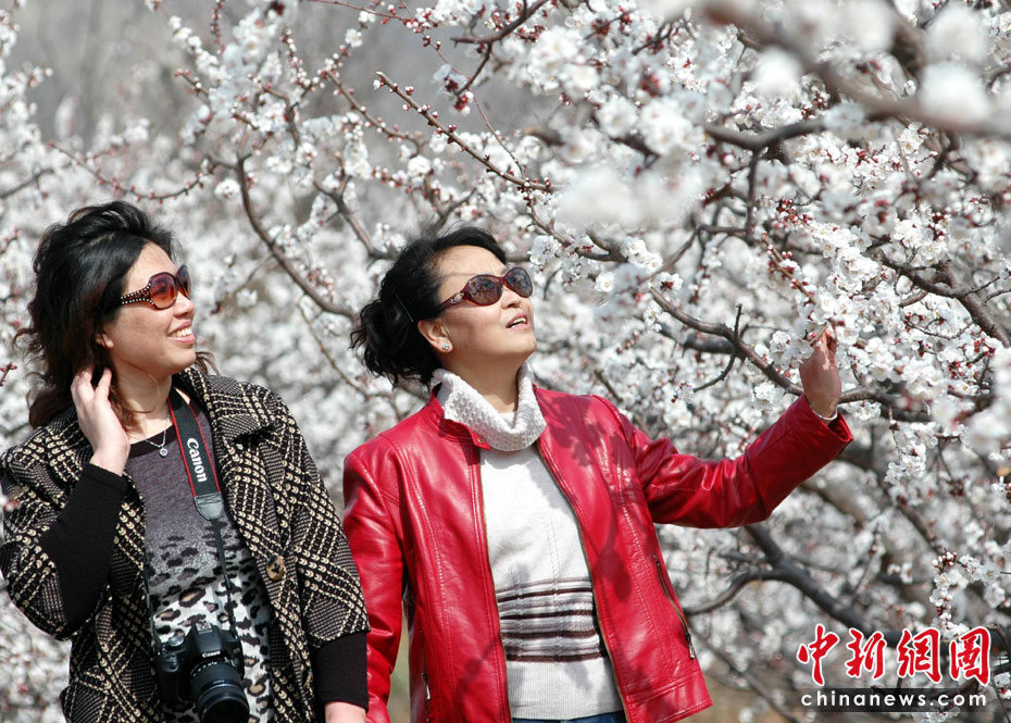 4月3日,山东邹平县万亩杏园内鲜花怒放,争奇斗艳,正在进行的杏花节观花活动吸引了当地及周边成千上万的摄影爱好者和游客纷纷前来拍照游玩,赏花踏青。中新社发 董乃德 摄