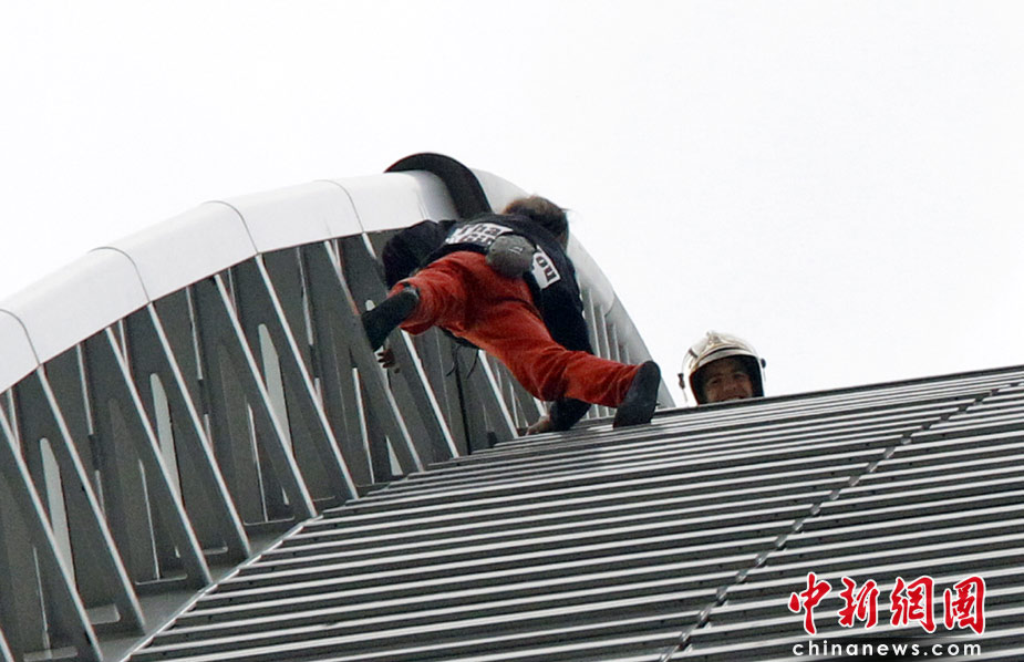 法国“蜘蛛人”50分钟攀爬185米高楼