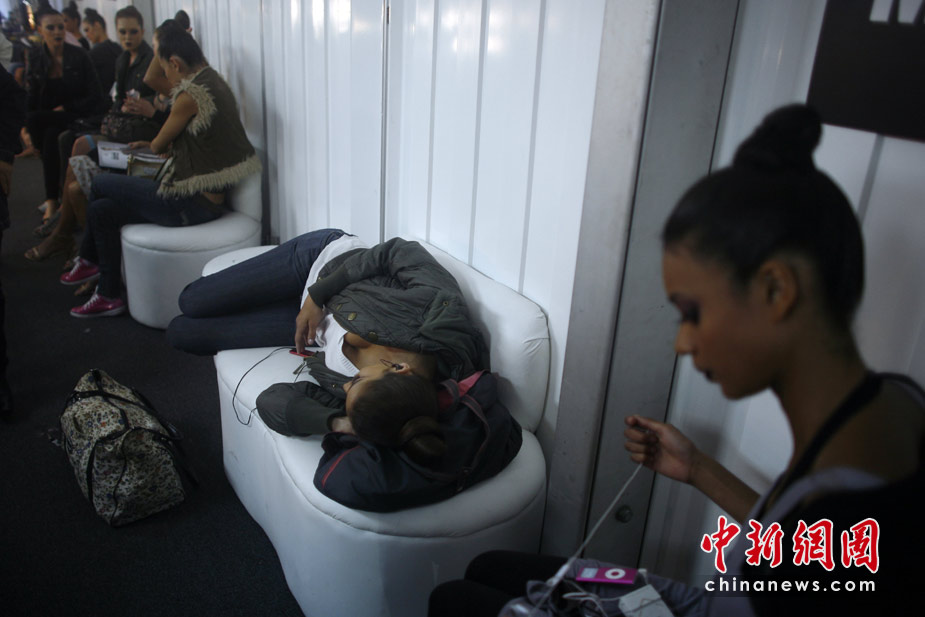 4月13日,墨西哥首都墨西哥城奔驰时装周,美模们在台前展现靓丽风采,后台则让我们看到了完全不同的世界。