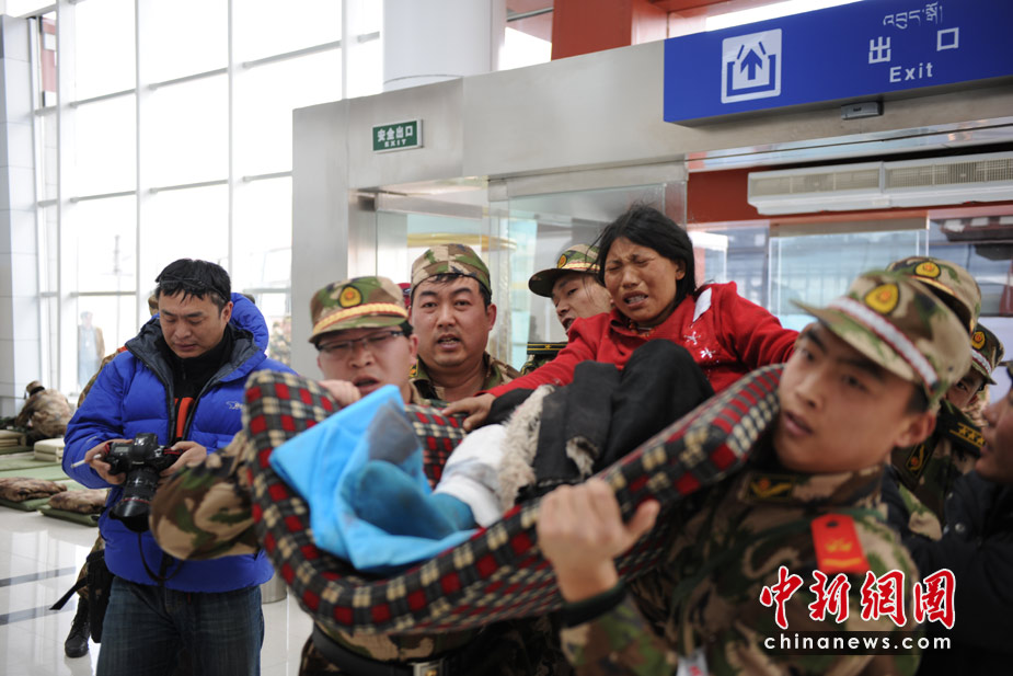 4月15日,玉树地震伤员正源源不断的从玉树机场乘飞机,被运往成都等地救治。 中新社/中新网记者 符永康 摄