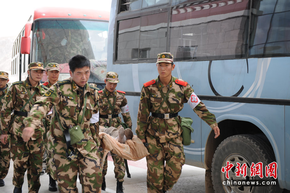 4月15日,玉树地震伤员正源源不断的从玉树机场乘飞机,被运往成都等地救治。 中新社/中新网记者 符永康 摄