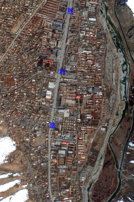 利用对地观测中心2010年4月16日获取的高分辨率航空遥感数据,提取出玉树州结古镇城区范围内地震破坏最严重或典型地区,使之与GoogleEarth中相应位置的震前遥感卫星数据进行对比,直观展现结古镇在此次地震中的受影响程度。图片来源:中国科学院